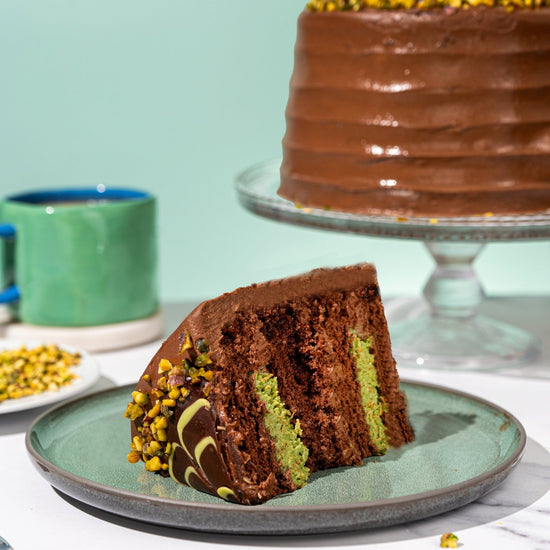 Experience the Richness of Our Middle Eastern Chocolate Pistachio Cake, a luxurious four-layer creation that blends decadent flavours with unique textures. Featuring layers of moist chocolate sponge, nutty pistachio cream, and crisp kunafa, this indulgent dessert is a celebration of taste and elegance.